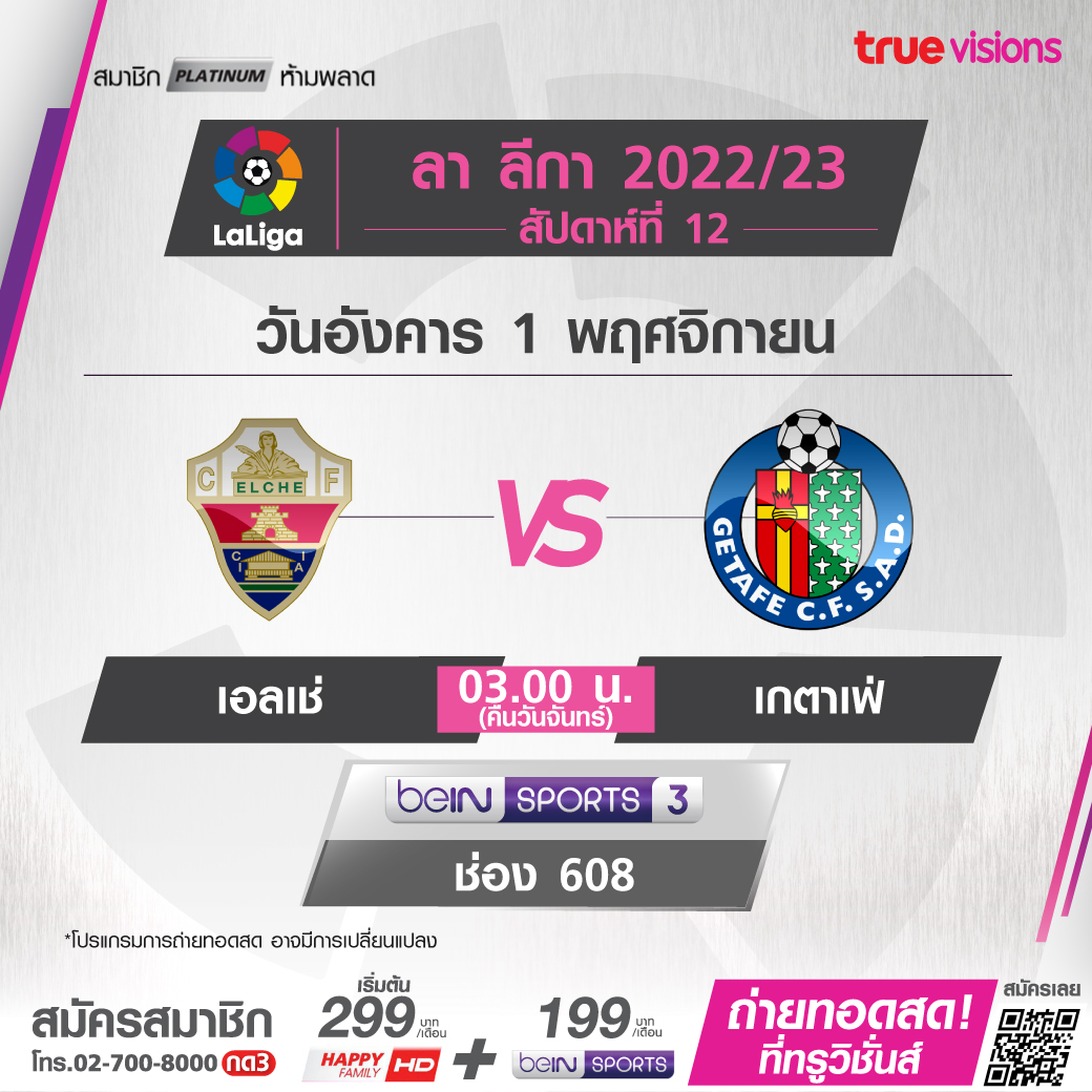 Elche vs. Getafe เวลา 03.00-05.00 ทางช่อง beIN 3 (608)