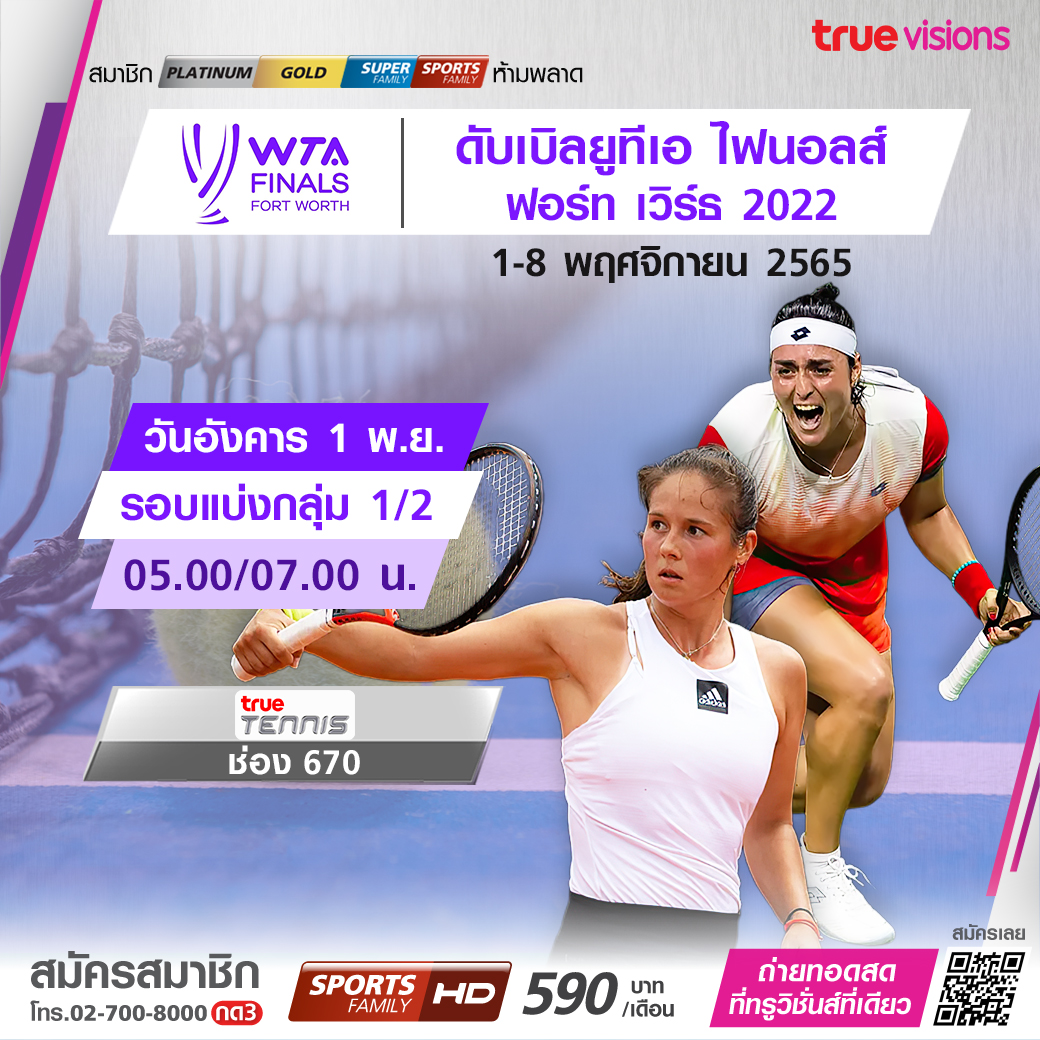 แฟนกีฬาเทนนิสต้องไม่พลาด!!! ศึกใหญ่ปิดท้ายปีที่จะวัดกันว่าใครจะเป็นราชินีของวงการเทนนิสหญิงปี 2022 กับรายการ ดับเบิ้ลยูทีเอ ไฟนอลส์ ฟอร์ทเวิร์ธ ที่มี 8 นักเทนนิสหญิงที่เก่งที่สุดของปีนี้มาชิงแชมป์ที่สำคัญที่สุด พร้อมเงินรางวัลมหาศาล 5 ล้านเหรียญสหรัฐฯ ชมสดครบทุกรอบ ทางทรูวิชั่นส์ ที่เดียว
