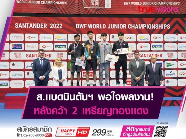 คุณหญิงปัทมา ลีสวัสดิ์ตระกูล กรรมการคณะกรรมการโอลิมปิกสากล หรือ ไอโอซีเมมเบอร์ รองประธานสหพันธ์แบดมินตันโลก และนายกสมาคมกีฬาแบดมินตันแห่งประเทศไทยฯ ออกมาชื่นชมทัพแบดมินตันไทยที่คว้ามา 2 เหรียญทองเเดง ในการแข่งขันแบดมินตันเยาวชนชิงแชมป์โลก 2022 "บีดับบลิวเอฟ เวิลด์จูเนียร์ แชมเปี้ยนชิพ 2022" ที่เมืองซานตานเดร์ ประเทศสเปน