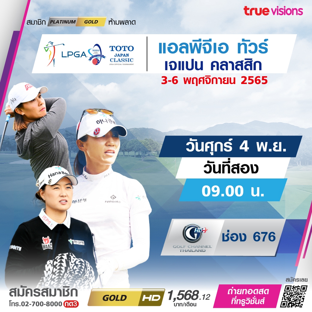 กอล์ฟหญิงแอลพีจีเอ ทัวร์ สัปดาห์นี้ ร่วมเชียร์โปรสาวไทยลุ้นแชมป์กับโปรระดับโลก ในศึก แจแปน คลาสสิก ที่เมืองชิกะ ประเทศญี่ปุ่น กับการแข่งขันในวันที่สอง ชมสด ทางทรูวิชั่นส์