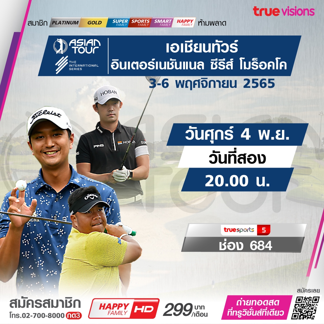 ลุ้นกันสุดมันกับโค้งสุดท้ายของกอล์ฟเอเชียนทัวร์ 2022 ข้ามทวีปไปดวลกันที่แอฟริกาเหนือเป็นครั้งแรก กับรายการ อินเตอร์เนชั่นแนล ซีรี่ส์ โมร็อคโค ร่วมเชียร์โปรไทยลุ้นถึงตำแหน่งแชมป์ กับการแข่งขันในวันที่สอง ชมสดครบทุกรอบ ทางทรูวิชั่นส์ ที่เดียว