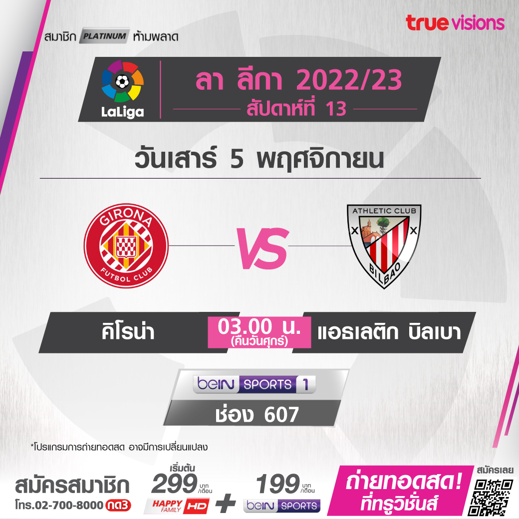 Girona vs. Athletic เวลา 03.00-05.00 ทางช่อง beIN Sports 1 (607)