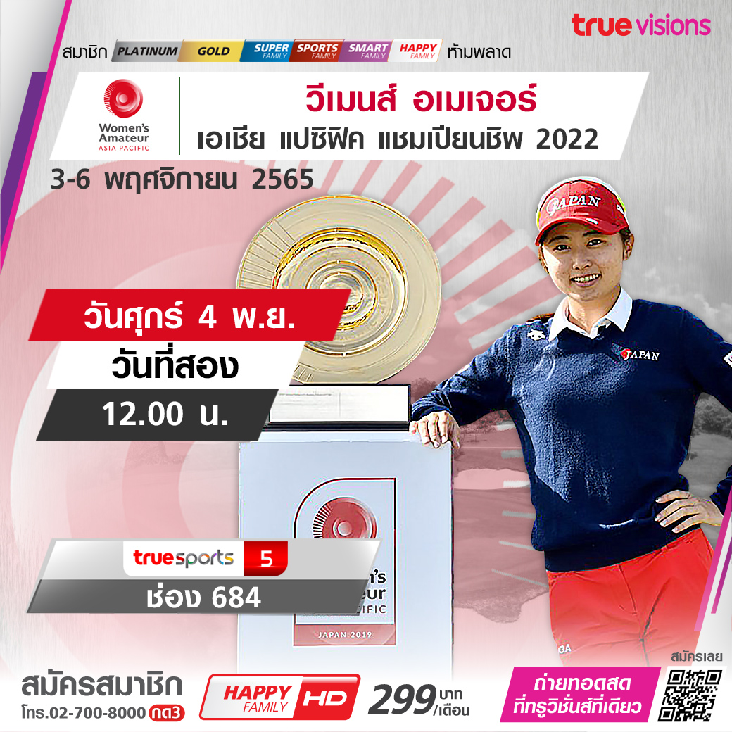 เวทีสำคัญระดับนานาชาติที่เกิดขึ้นในประเทศไทยสัปดาห์นี้กับศึก วีเมนส์ อเมเจอร์ เอเชีย แปซิฟิค แชมเปี้ยนชิพ 2022 ลุ้นกันว่านักกอล์ฟคนไหนจะคว้าแชมป์ไปครอง กับการแข่งขันในวันที่สอง ชมสดจากสนาม ไทย คันทรี่ คลับ ครบทุกรอบ ชมสด ทางทรูวิชั่นส์ ที่เดียว