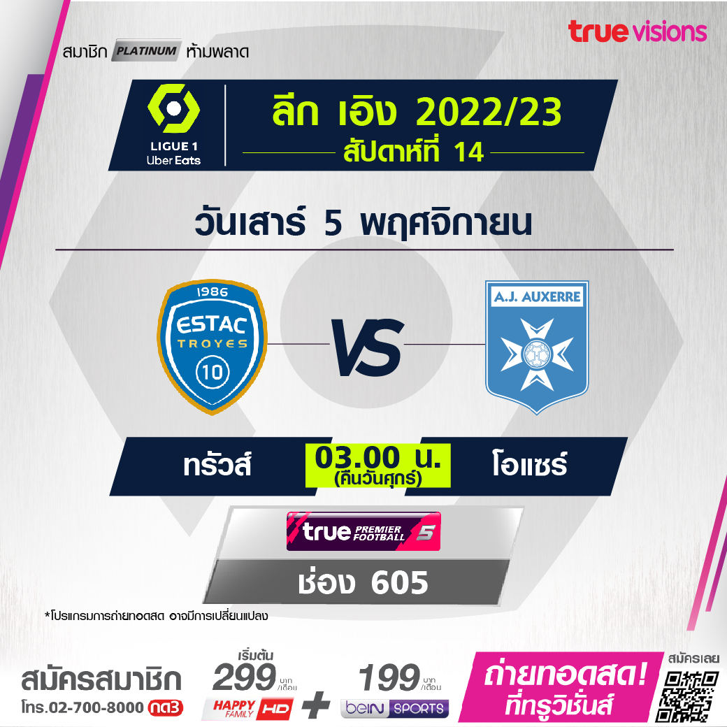 Troyes vs. Auxerre เวลา 03.00-05.00 ทางช่อง TPF 5 (605)