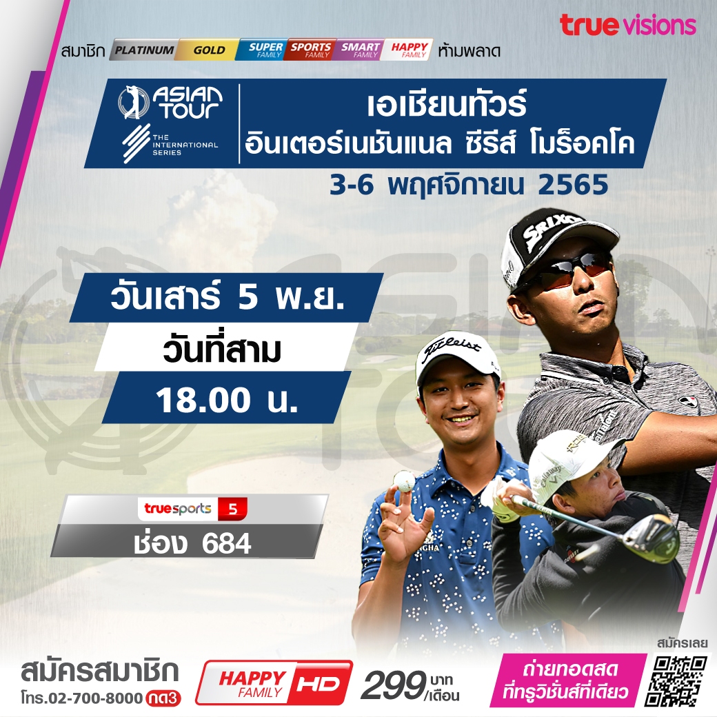 ลุ้นกันสุดมันกับโค้งสุดท้ายของกอล์ฟเอเชียนทัวร์ 2022 ข้ามทวีปไปดวลกันที่แอฟริกาเหนือเป็นครั้งแรก กับรายการ อินเตอร์เนชั่นแนล ซีรี่ส์ โมร็อคโค ร่วมเชียร์โปรไทยลุ้นถึงตำแหน่งแชมป์ กับการแข่งขันในวันที่สาม ชมสดครบทุกรอบ ทางทรูวิชั่นส์ ที่เดียว