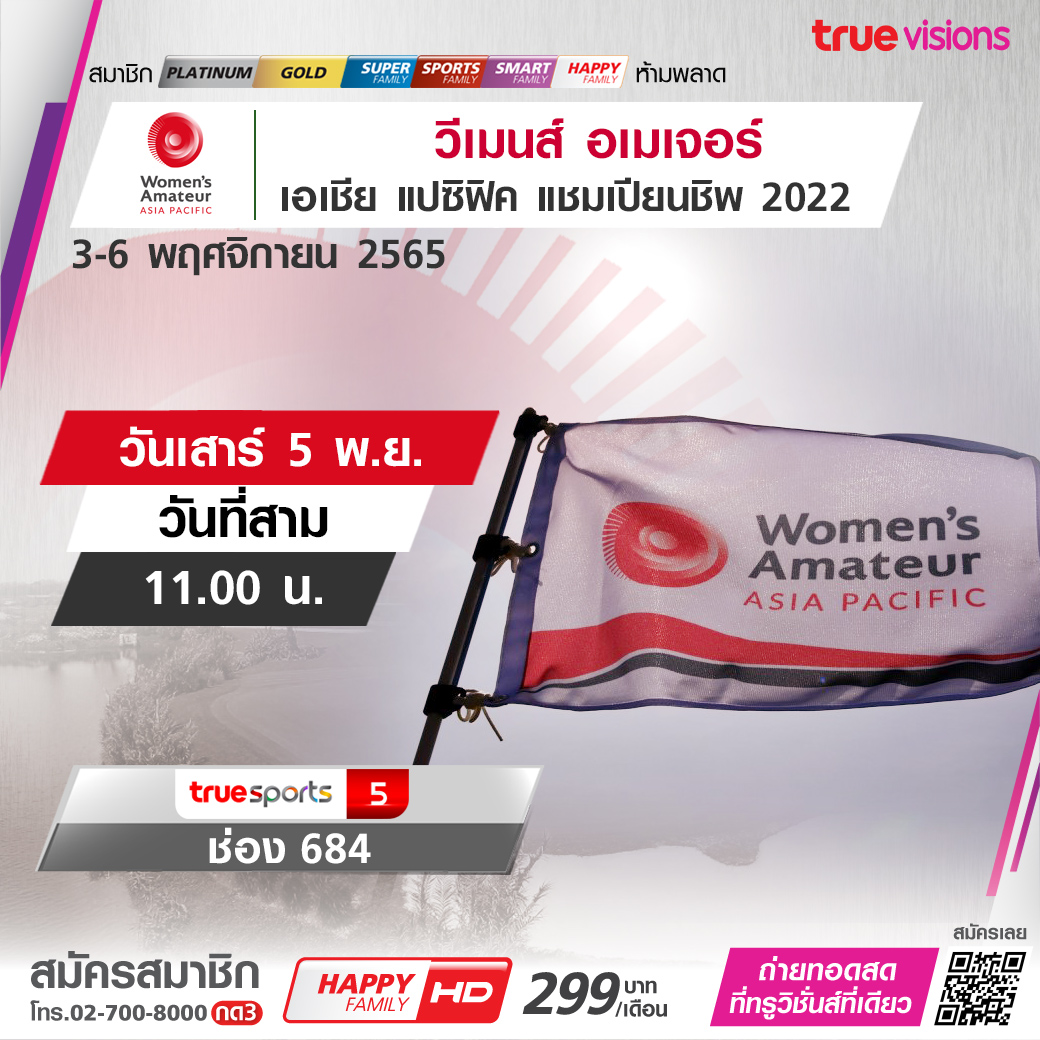 เวทีสำคัญระดับนานาชาติที่เกิดขึ้นในประเทศไทยสัปดาห์นี้กับศึก วีเมนส์ อเมเจอร์ เอเชีย แปซิฟิค แชมเปี้ยนชิพ 2022 ลุ้นกันว่านักกอล์ฟคนไหนจะคว้าแชมป์ไปครอง กับการแข่งขันในวันที่สาม ชมสดจากสนาม ไทย คันทรี่ คลับ ครบทุกรอบ ชมสด ทางทรูวิชั่นส์ ที่เดียว