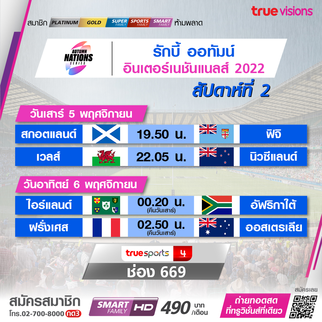 สัปดาห์ที่ 2 ของศึกรักบี้ฟุตบอลที่แฟนๆ รอคอย กับ ออทัมน์ อินเตอร์เนชันแนลส์ ซีรีส์ ที่ชาติชั้นนำของโลกทั้ง นิวซีแลนด์ ออล แบล็ค, ออสเตรเลีย, อังกฤษ, ไอร์แลนด์ และฝรั่งเศส จัดทีมที่แข็งแกร่งมาปะทะกัน ชมสดจุใจ มากถึง 5 แมตช์ ทางทรูวิชั่นส์ ที่เดียว