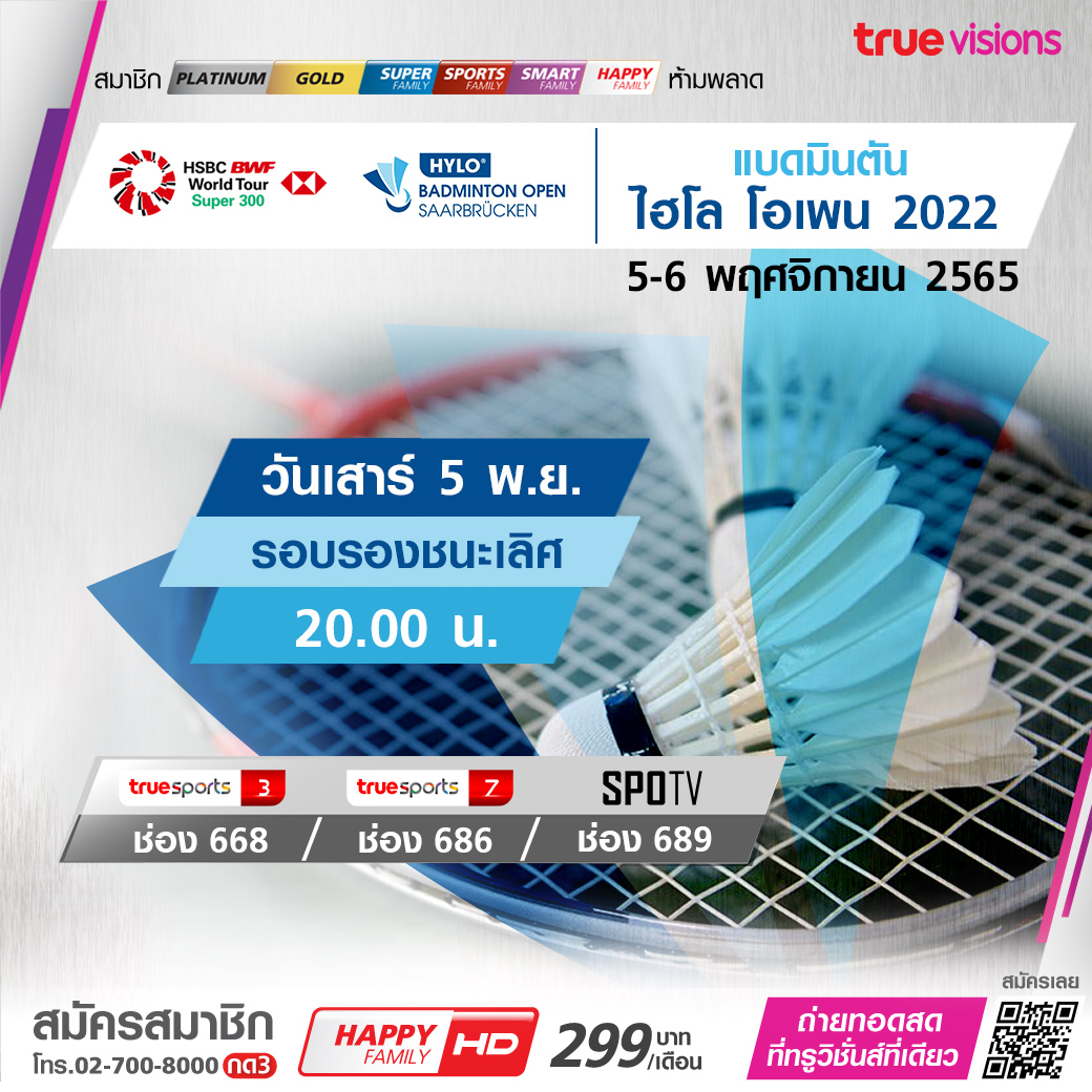 เปิดศึกเพลงตบกันต่อเนื่องในทวีปยุโรปเป็นสัปดาห์ที่ 3 แฟนๆ กีฬาแบดมินตันมันส์กันต่อกับการเชียร์นักกีฬาของไทย สู้เพื่อคว้าชัยในรายการ ไฮโล โอเพ่น 2022 จากเมืองซาร์บรู๊คเค่น ประเทศเยอรมนี ชมสด ทางทรูวิชั่นส์ ที่เดียว
