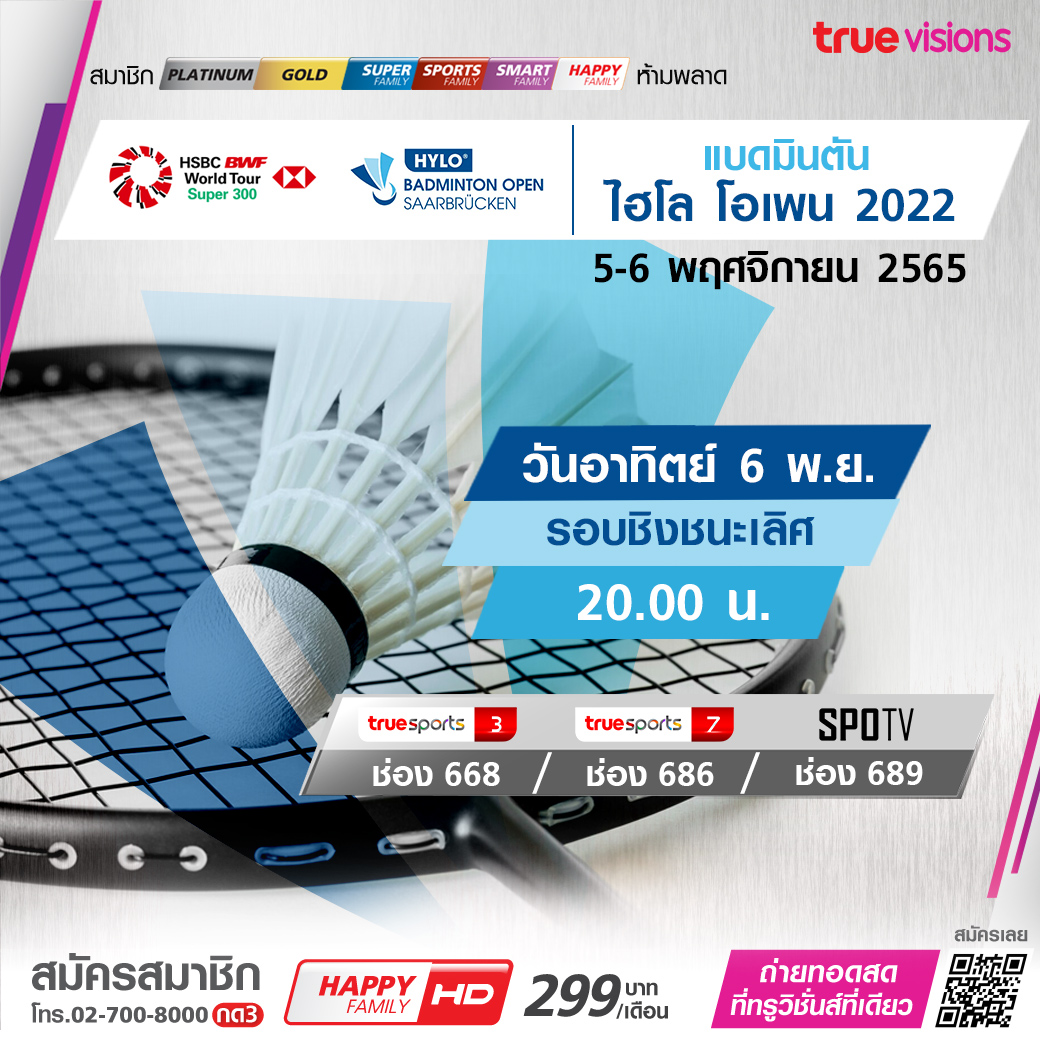 เปิดศึกเพลงตบกันต่อเนื่องในทวีปยุโรปเป็นสัปดาห์ที่ 3 แฟนๆ กีฬาแบดมินตันมันส์กันต่อกับการเชียร์นักกีฬาของไทย สู้เพื่อคว้าชัยในรายการ ไฮโล โอเพ่น 2022 จากเมืองซาร์บรู๊คเค่น ประเทศเยอรมนี ชมสด ทางทรูวิชั่นส์ ที่เดียว