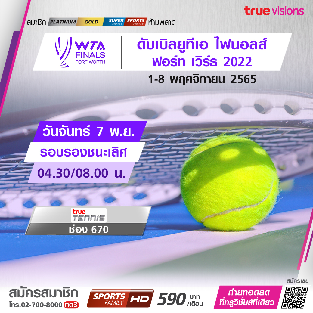แฟนกีฬาเทนนิสต้องไม่พลาด!!! ศึกใหญ่ปิดท้ายปีกับรายการ ดับเบิ้ลยูทีเอ ไฟนอลส์ ฟอร์ทเวิร์ธ ที่มี 8 นักเทนนิสหญิงที่เก่งที่สุดของปีนี้มาชิงแชมป์ที่สำคัญที่สุด พร้อมเงินรางวัลมหาศาล 5 ล้านเหรียญสหรัฐฯ เดินทางมาถึงรอบรองชนะเลิศแล้ว ใครจะผ่านเข้าสู่รอบชิงชนะเลิศ ชมสดครบทุกรอบ ทางทรูวิชั่นส์ ที่เดียว