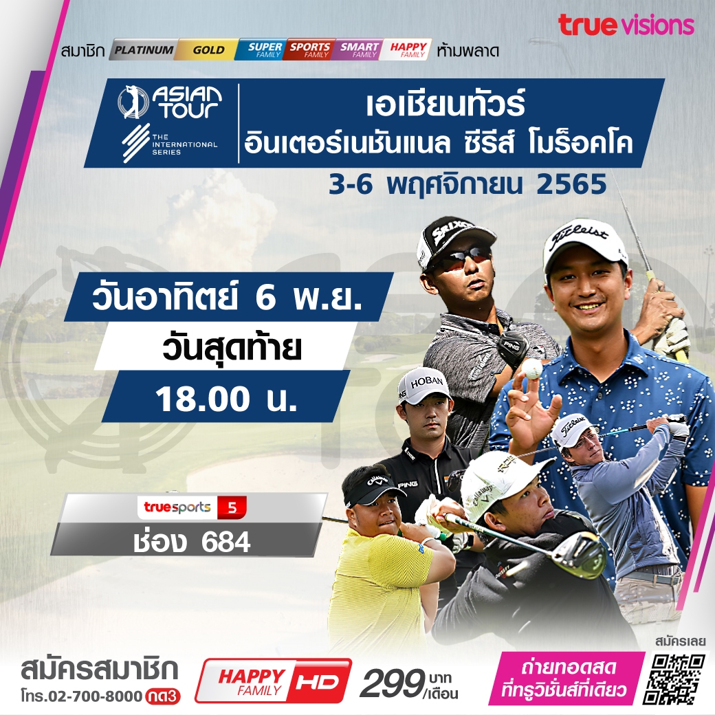 ลุ้นกันสุดมันกับโค้งสุดท้ายของกอล์ฟเอเชียนทัวร์ 2022 ข้ามทวีปไปดวลกันที่แอฟริกาเหนือเป็นครั้งแรก กับรายการ อินเตอร์เนชั่นแนล ซีรี่ส์ โมร็อคโค ร่วมเชียร์โปรไทยลุ้นถึงตำแหน่งแชมป์ กับการแข่งขันในวันสุดท้าย ชมสดครบทุกรอบ ทางทรูวิชั่นส์ ที่เดียว