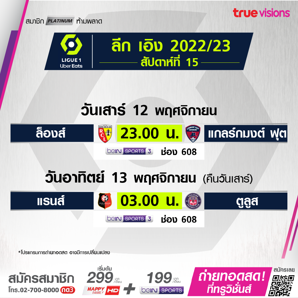 Lens vs Clermont เวลา 23.00-01.00 ทางช่อง beIN 3 (608)