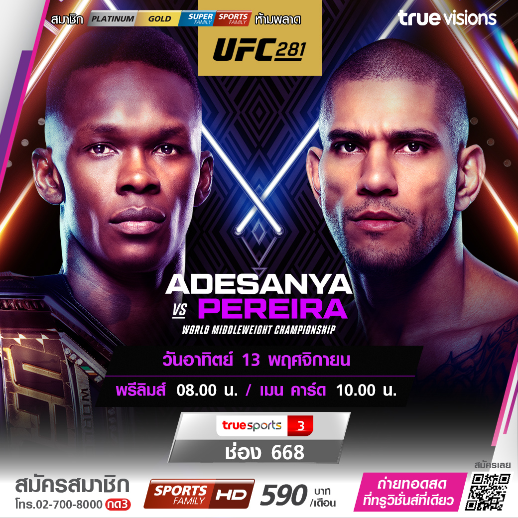 มาพร้อมกับความยิ่งใหญ่สำหรับศึก ยูเอฟซี 281 คู่เอก อิสราเอล อเดซานย่า ป้องกันตำแหน่งรุ่นมิดเดิ้ลเวตกับคู่ปรับเก่าที่เคยฝากรอยแค้นเอาไว้เมื่อหลายปีก่อนอย่าง อเล็กซ์ เปไรร่า ร่วมด้วยคู่เอกร่วม คาร์ล่า เอสปาร์ซ่า ป้องกันแชมป์สตรอว์เวตหญิง กับอดีตแชมป์อย่าง จาง เหว่ย ลี่ จากจีน ชมสดจาก เมดินสัน สแควร์ การ์เด้น ชมสด ทางทรูวิชั่นส์ ที่เดียว