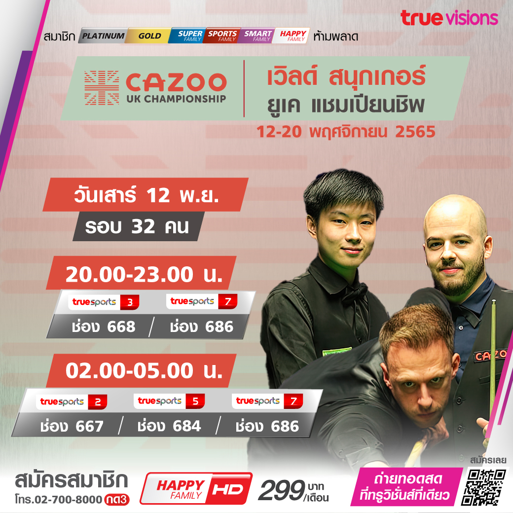 มาพบกันแฟนๆ กีฬาสอยคิวในช่วงท้ายปี กับรายการเก็บคะแนนสะสมโลกที่เป็นระดับทริปเปิลคราวน์ ในศึก ยูเค แชมเปี้ยนชิพ นักสนุกเกอร์ระดับท็อปของ เวิลด์ แรงกิ้ง 32 คน สู้เพื่อแชมป์ที่ยิ่งใหญ่ของปีเพียงหนึ่งเดียว ชมสด จุใจตั้งแต่รอบแรกถึงรอบชิงชนะเลิศ ชมสด ทางทรูวิชั่นส์ ที่เดียว