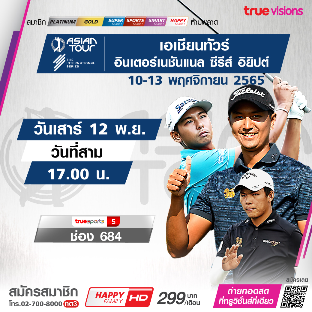 ร่วมลุ้นร่วมเชียร์โปรไทยให้ทำผลงานโดดเด่นและลุ้นไปถึง ตำแหน่งแชมป์ ในกอล์ฟ เอเชียน ทัวร์ อินเตอร์เนชั่นแนล ซีรี่ส์ อียิปต์ ในวันที่สาม ชมสด ทางทรูวิชั่นส์ ที่เดียว