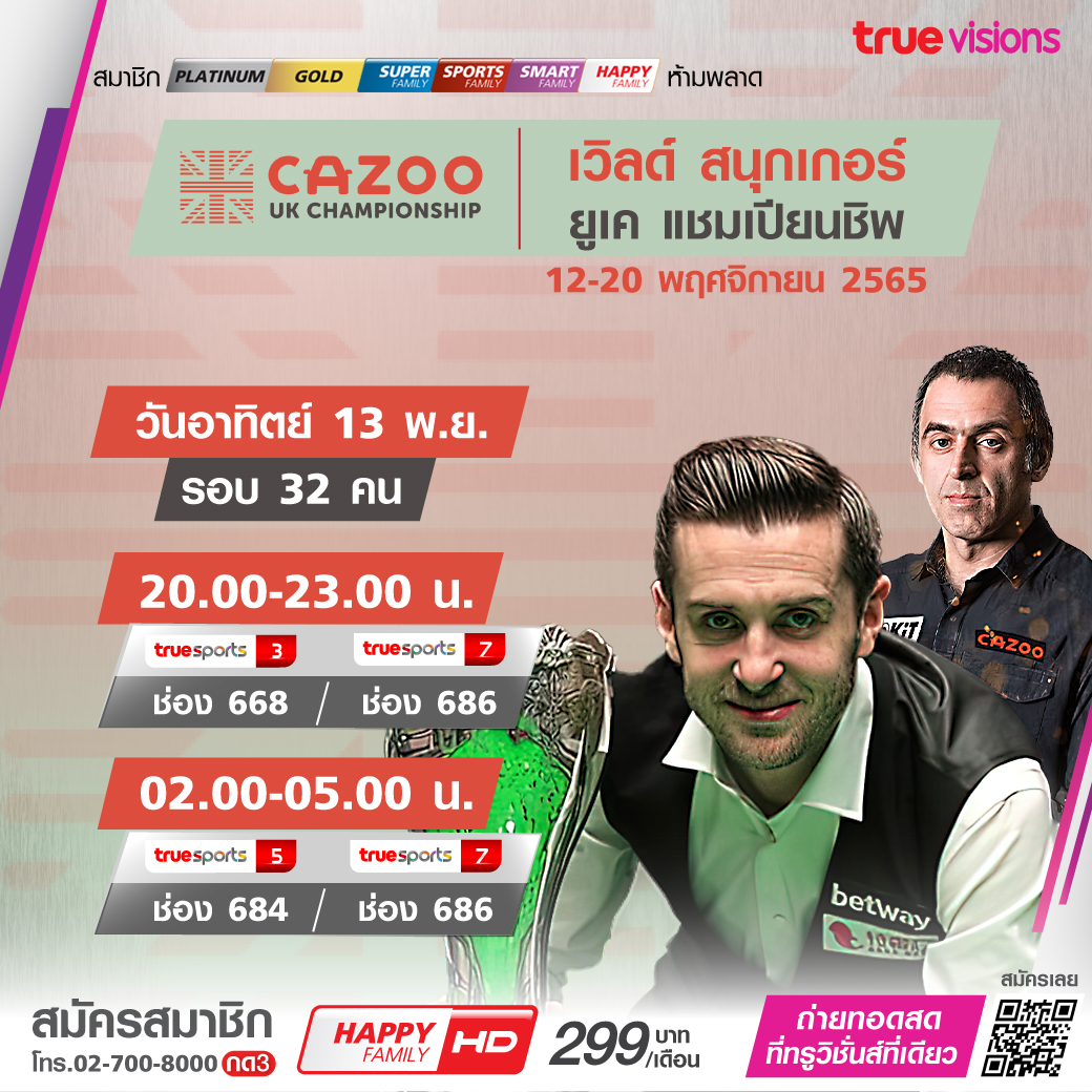 มาพบกันแฟนๆ กีฬาสอยคิวในช่วงท้ายปี กับรายการเก็บคะแนนสะสมโลกที่เป็นระดับทริปเปิลคราวน์ ในศึก ยูเค แชมเปี้ยนชิพ นักสนุกเกอร์ระดับท็อปของ เวิลด์ แรงกิ้ง 32 คน สู้เพื่อแชมป์ที่ยิ่งใหญ่ของปีเพียงหนึ่งเดียว ชมสด จุใจตั้งแต่รอบแรกถึงรอบชิงชนะเลิศ ชมสด ทางทรูวิชั่นส์ ที่เดียว