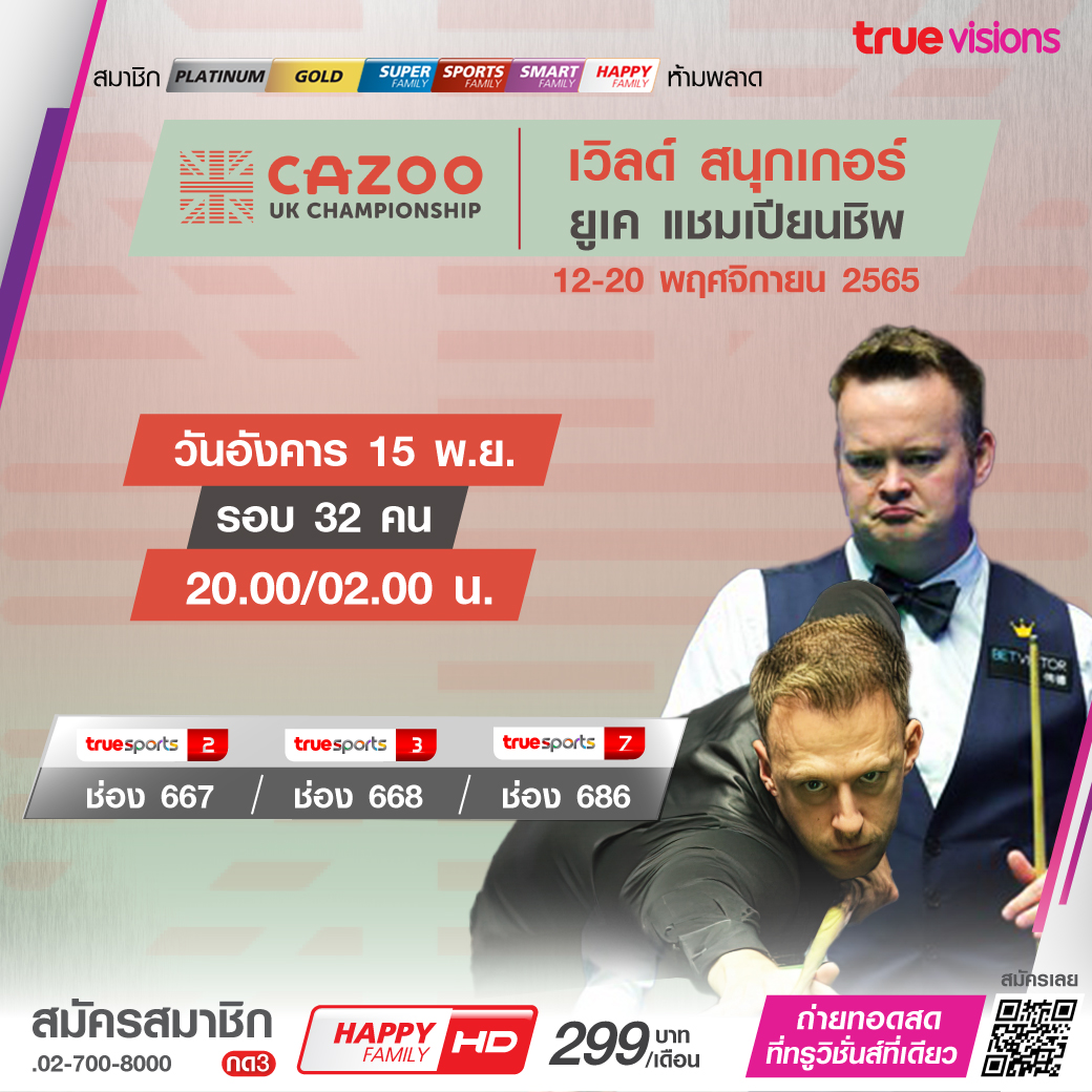 มาพบกันแฟนๆ กีฬาสอยคิวในช่วงท้ายปี กับรายการเก็บคะแนนสะสมโลกที่เป็นระดับทริปเปิลคราวน์ ในศึก ยูเค แชมเปี้ยนชิพ นักสนุกเกอร์ระดับท็อปของ เวิลด์ แรงกิ้ง 32 คน สู้เพื่อแชมป์ที่ยิ่งใหญ่ของปีเพียงหนึ่งเดียว ชมสด จุใจตั้งแต่รอบแรกถึงรอบชิงชนะเลิศ ชมสด ทางทรูวิชั่นส์ ที่เดียว