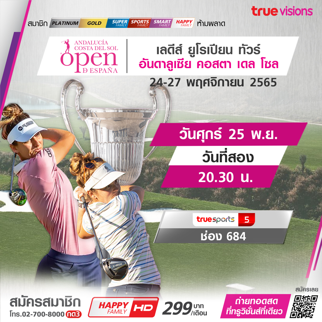 ลุ้นกันว่านักกอล์ฟสาวคนไหนจะปิดฉากฤดูกาล 2022 ด้วยตำแหน่งแชมป์อันทรงเกียรติของเลดี้ส์ ยูโรเปี้ยน ทัวร์ รายการ อันดาลูเซีย คอสต้า เดล โซล โอเพ่น เด เอสปันญ่า ในวันที่สอง สดครบทุกรอบจากประเทศสเปน ชมสด ทางทรูวิชั่นส์ ที่เดียว