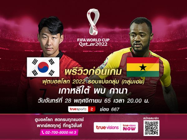 ศึกฟุตบอลโลก 2022 รอบแบ่งกลุ่ม กลุ่มเอช เกาหลีใต้ จะพบกับ กาน่า โดยเกมนี้ เกาหลีใต้ ไม่มีปัญหาเรื่องสภาพทีม และใช้ผู้เล่นชุดที่ดีที่สุดลงสนาม โดยมีกองหน้าตัวความหวังอย่าง ซน ฮึง-มิน นำทีม ที่ไร้ปัญหาอาการบาดเจ็บกระดูกโหนกแก้ม และต้องเน้นเต็มที่เพื่อเก็บ 3 แต้มในเกมนี้ให้ได้ เช่นเดียวกับ กาน่า ที่ก็ไม่มีปัญหาตัวเจ็บเช่นกัน และอยู่ในสถานการณ์หลังพิงฝา หลังแพ้มาในเกมแรก ดังนั้นเกมนี้พวกเขาต้องสู้เต็มที่เพื่อคว้าสามแต้มให้ได้เช่นกัน ไม่อย่างนั้นโอกาสตกรอบสูงมาก