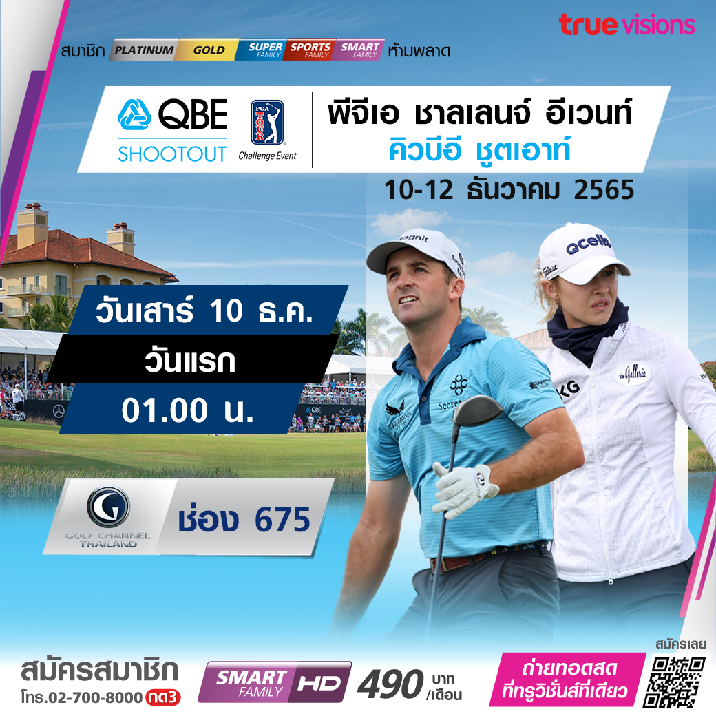 ดวลกันต่อเนื่อง กับ พีจีเอ ชาลเลนจ์ อีเวนท์ ช่วงท้ายปี พบกับ คิวบีอี ชู้ตเอาท์ 2022 กอล์ฟประเภททีม 2 คนที่มีทั้งความสนุกตื่นเต้นของเกม และประสิทธิภาพของทีมเวิร์ค ที่จะนำไปสู่ตำแหน่งแชมป์ สดจาก ทิบูรอน กอล์ฟ คอร์ส ในเมืองเนเปิลส์ รัฐฟลอริด้า ประเทศสหรัฐอเมริกา สด ครบทุกรอบ ชมสด ทางทรูวิชั่นส์ ที่เดียว