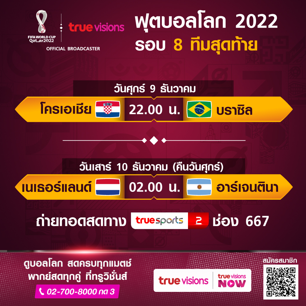 Croatia vs Brazil เวลา 22.00-00.00 ทางช่อง TS 2 (667)