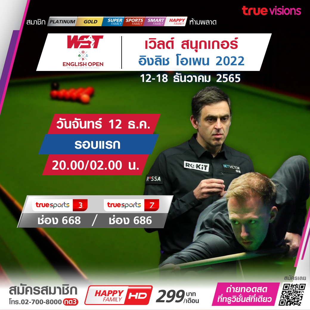 สนุกเกอร์ เก็บคะแนนสะสมโลก ดวลคิวกันต่อเนื่อง มือดี มือท็อปของทัวร์ และขวัญใจของแฟนๆ มากันแบบครบ เพื่อแข่งขันและลุ้นแชมป์ อิงลิช โอเพ่น พร้อมกับถ้วยรางวัลอันทรงเกียรติ สตีฟ เดวิส โทรฟี่ ชมสดครบทุกรอบ ชมสด ทางทรูวิชั่นส์ ที่เดียว