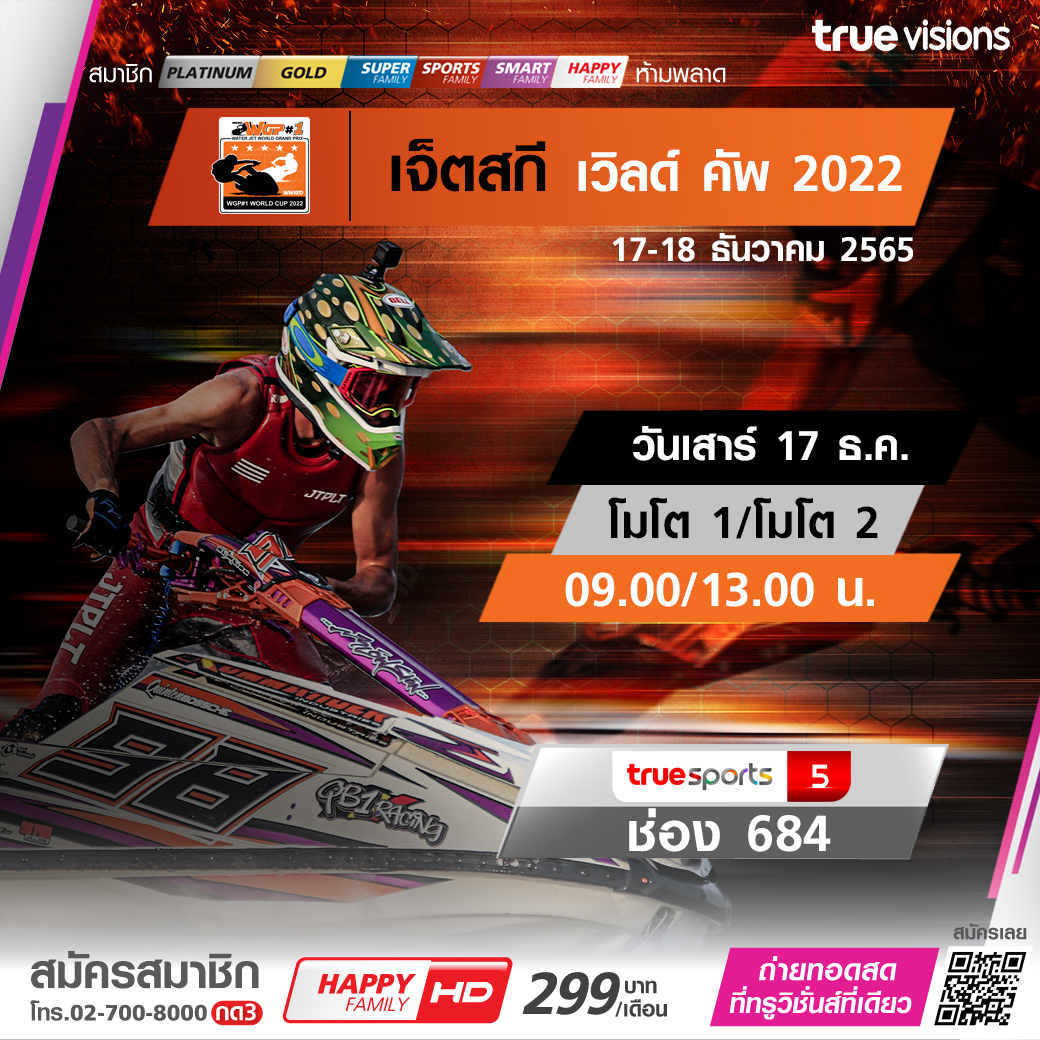 ยิ่งใหญ่ส่งท้ายกับความมันระดับโลกที่จะเกิดขึ้นในประเทศไทย ที่หาดจอมเทียน พัทยา จ. ชลบุรี กับการแข่งขันเจ็ตสกี เวิลด์ คัพ 2022 ตื่นตา ตื่นใจกับลีลาของนักขับไทยและมือระดับโลก ที่จะมาชิงชัยเพื่อเป็นเจ้าของแชมป์แห่งศักดิ์ศรี ชมสด ทางทรูวิชั่นส์ ที่เดียว