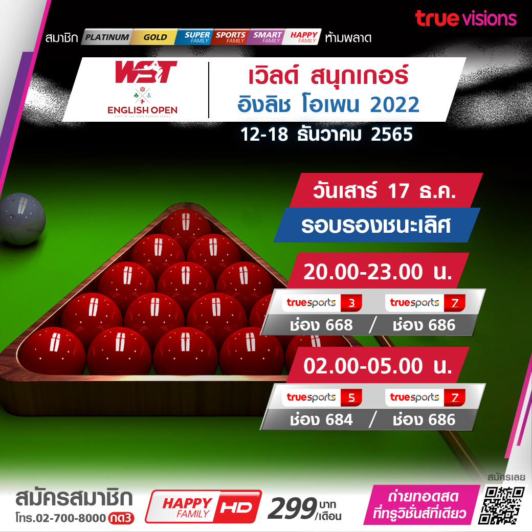 สนุกเกอร์เก็บคะแนนสะสมโลก รายการ อิงลิช โอเพ่น เชียร์นักสนุกเกอร์ระดับโลกชิงถ้วยรางวัลอันทรงเกียรติ สตีฟ เดวิส โทรฟี่ ชมสดแบบจุใจในรอบรองชนะเลิศ ชมสด ทางทรูวิชั่นส์ ที่เดียว