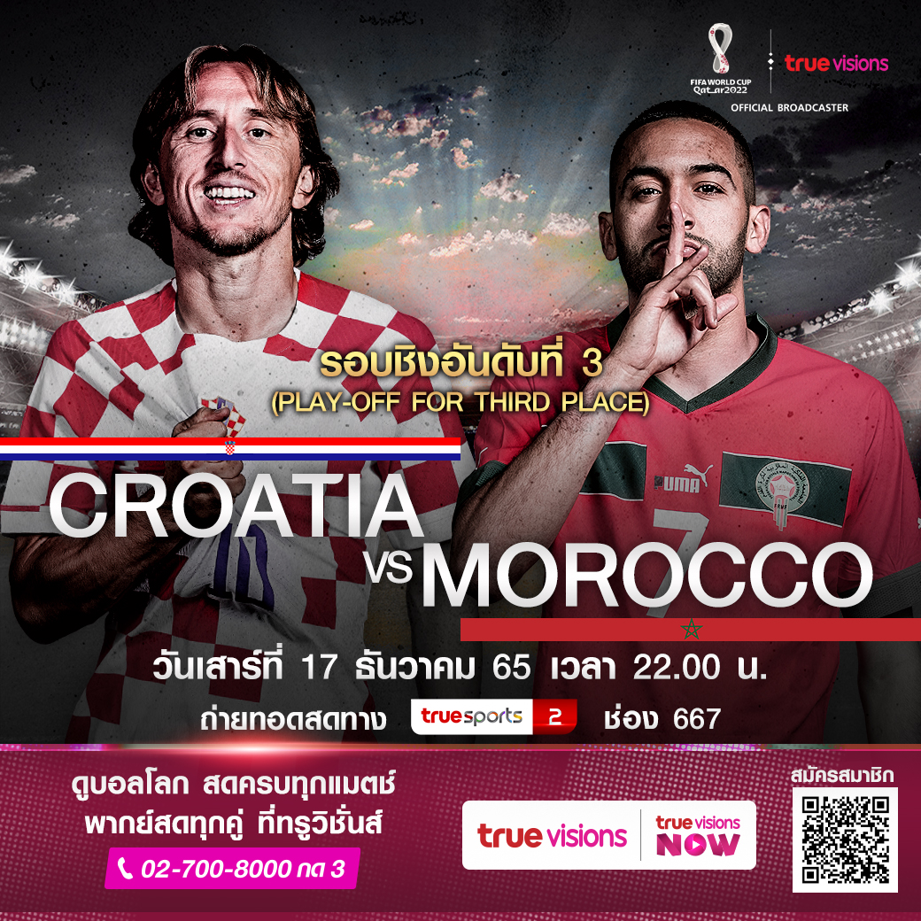 Croatia vs Morocco เวลา 22.00-00.00 ทางช่อง TS 2 (667)