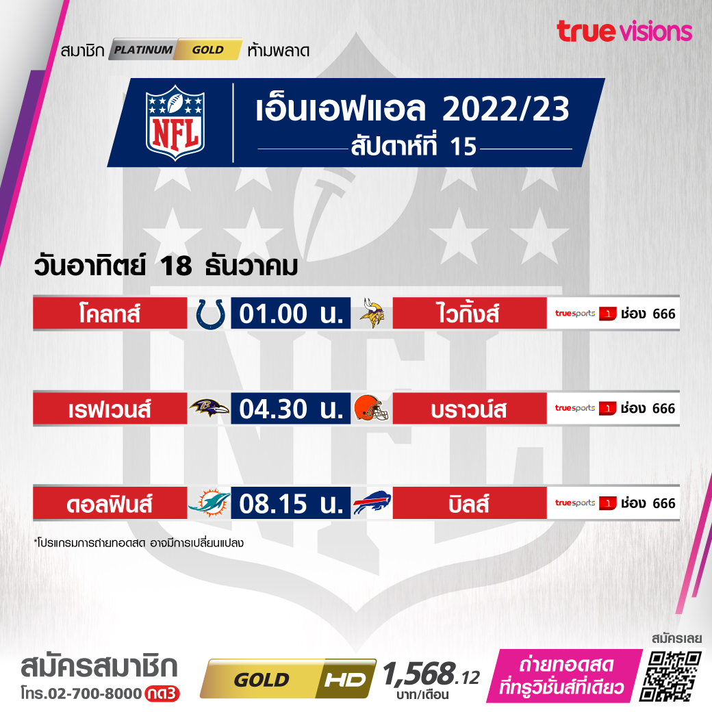 วันอาทิตย์ 18 Colts Vs Vikings เวลา 01.00 ทางช่อง TS 1 (666)
