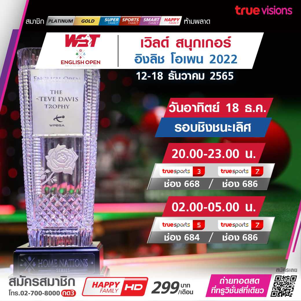 สนุกเกอร์เก็บคะแนนสะสมโลก รายการ อิงลิช โอเพ่น เชียร์นักสนุกเกอร์ระดับโลกชิงถ้วยรางวัลอันทรงเกียรติ สตีฟ เดวิส โทรฟี่ ชมสดแบบจุใจในรอบชิงชนะเลิศ ชมสด ทางทรูวิชั่นส์ ที่เดียว