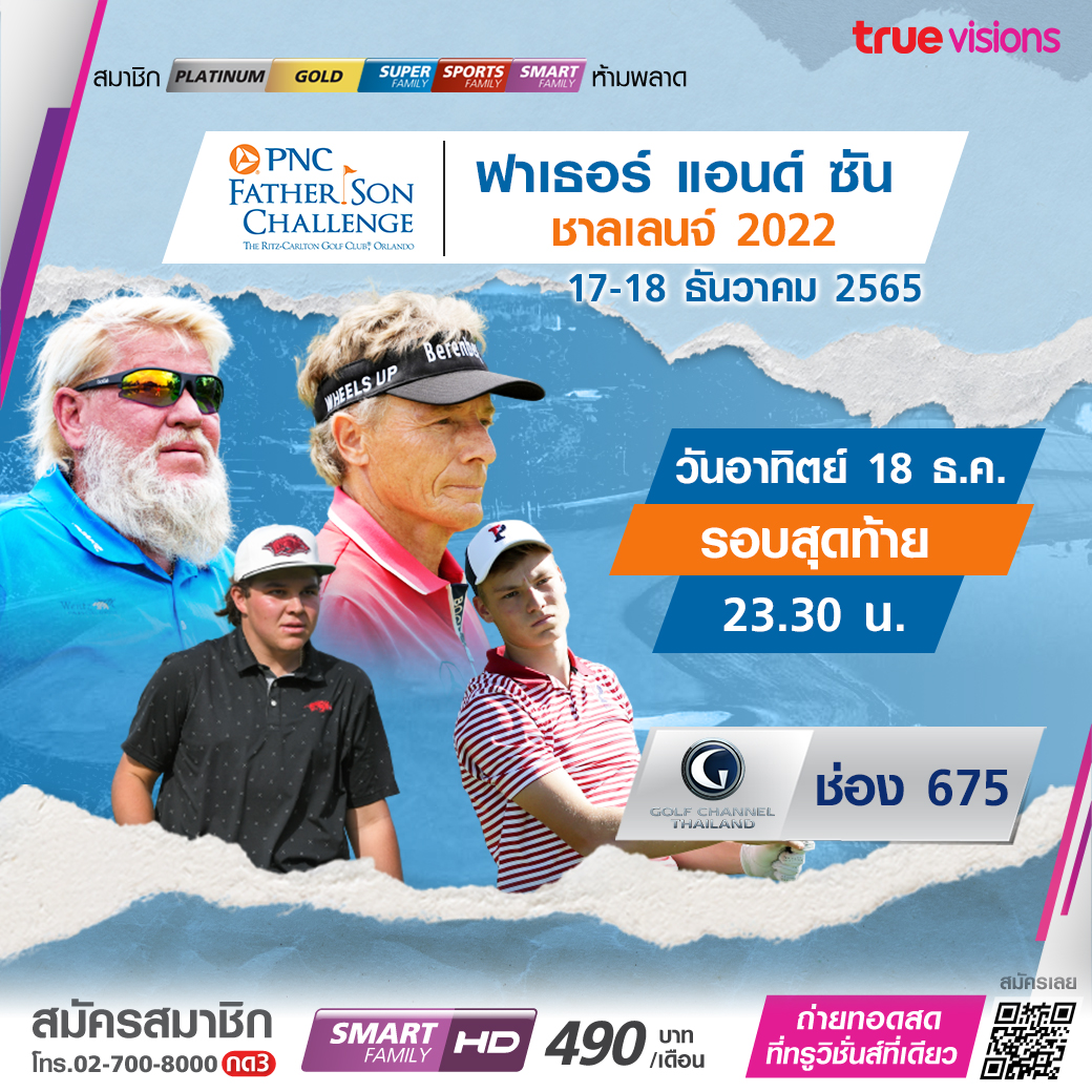 แฟนๆ กีฬากอล์ฟต้องติดตามชมกอล์ฟรายการพิเศษ ฟาเธอร์ แอนด์ ซัน ชาลเลนจ์ แท็คทีม พ่อ-ลูก ใครจะคว้าแชมป์รายการนี้ไปครอง ชมสดการแข่งขันในวันสุดท้ายจาก ออร์ลันโด้ สหรัฐอเมริกา ชมสด ทางทรูวิชั่นส์ ที่เดียว