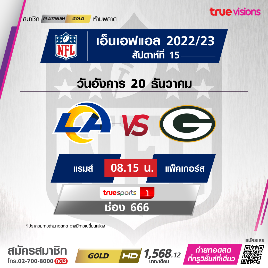 วันอังคาร 20 Rams Vs Packers เวลา 08.15 ทางช่อง TS 1 (666)