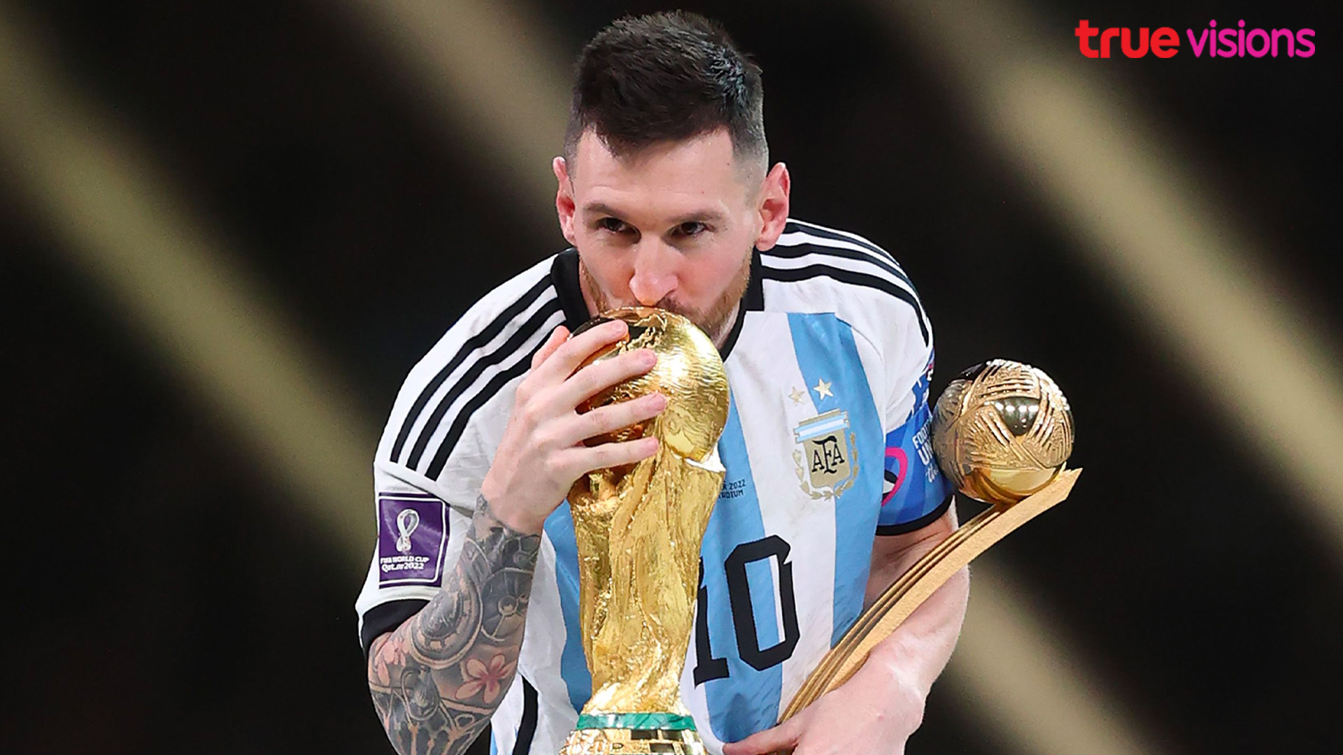 ลิโอเนล เมสซี่ กัปตันทีม อาร์เจนตินา พาทีมผงาดครองแชมป์ฟุตบอลโลก 2022 หลังยิงจุดโทษปราบ ฝรั่งเศส แล้วยังทำให้ เมสซี่ ได้รางวัลนักเตะยอดเยี่ยมหรือลูกบอลทองคำไปด้วย
