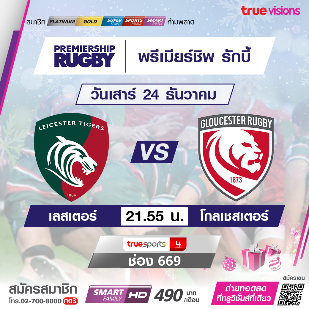 แฟนๆ กีฬารักบี้ฟุตบอล ต้องชมศึกใหญ่ ลีกสำคัญของวงการรักบี้อังกฤษ พรีเมียร์ชิพ รักบี้ 2022 กับเกมสุดมันระหว่าง เลสเตอร์ ไทเกอร์ส กับ คู่ปรับสำคัญ โกลเชสเตอร์ ชมสด ทางทรูวิชั่นส์ ที่เดียว