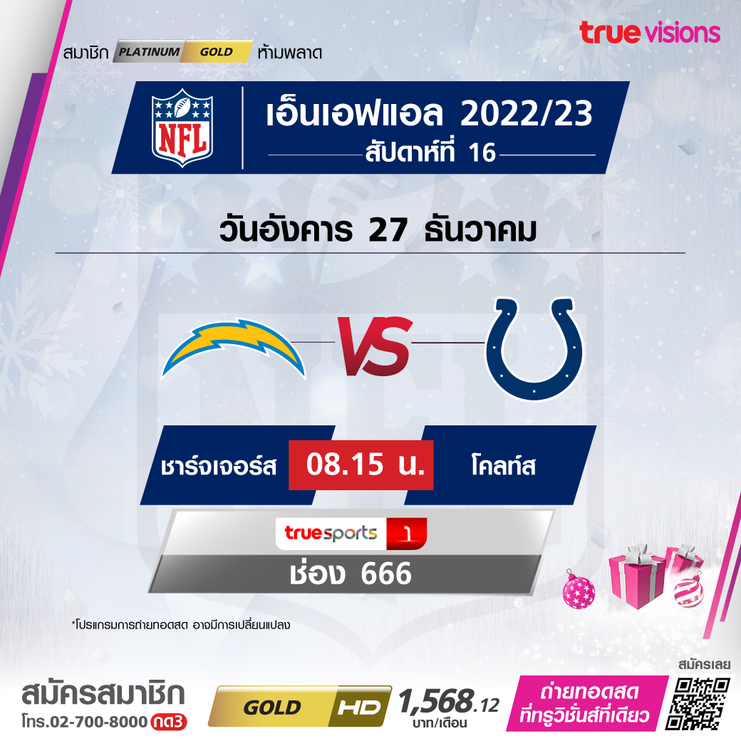 วันอังคาร 27 Chargers Vs Colts เวลา 08.15 ทางช่อง TS 1 (666)