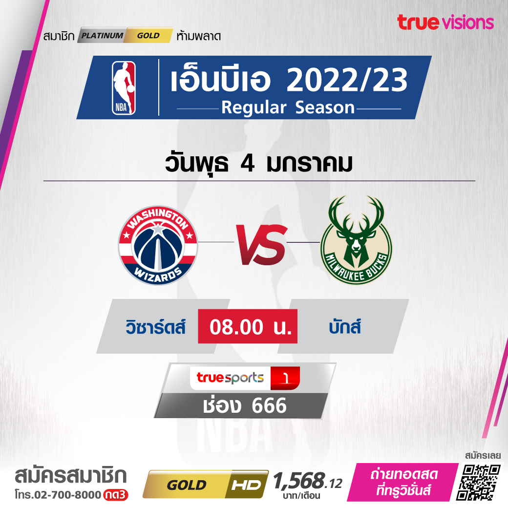 วันพุธ 4 ม.ค. Wizards Vs Bucks เวลา 08.00 ทางช่อง TS 1 (666)