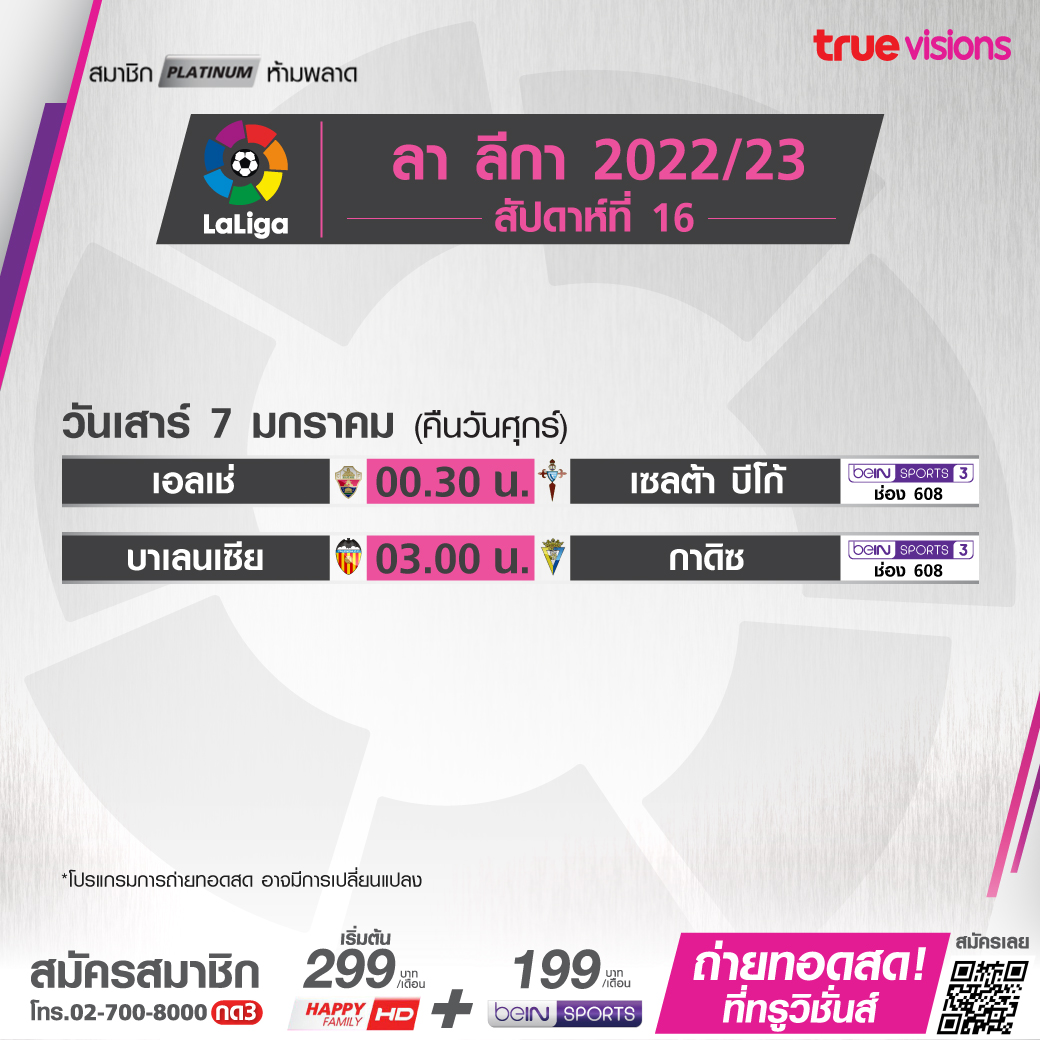 Elche vs Celta เวลา 00.30-02.30 ทางช่อง beIN 3 (608)