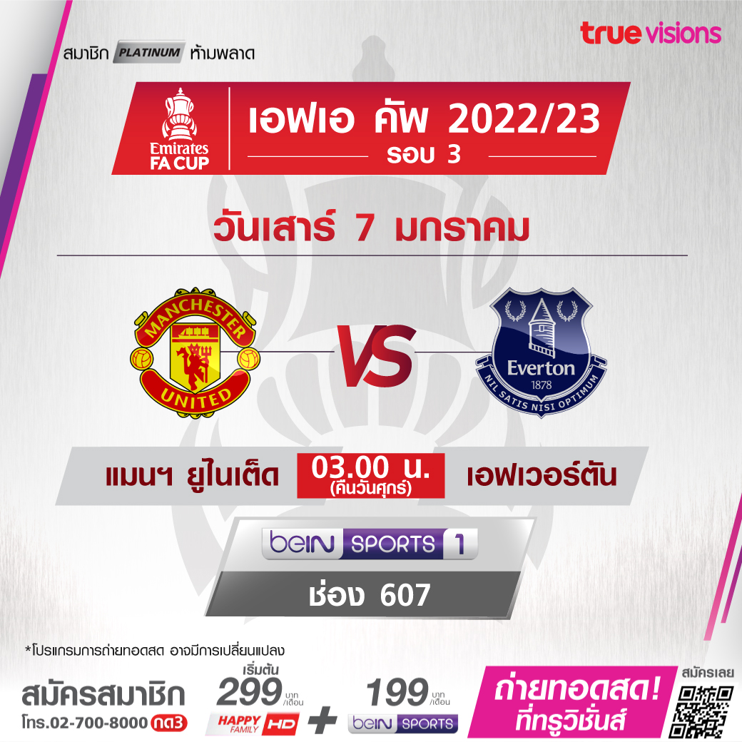 Man Utd vs Everton เวลา 03.00-05.00 ทางช่อง beIN 1 (607)