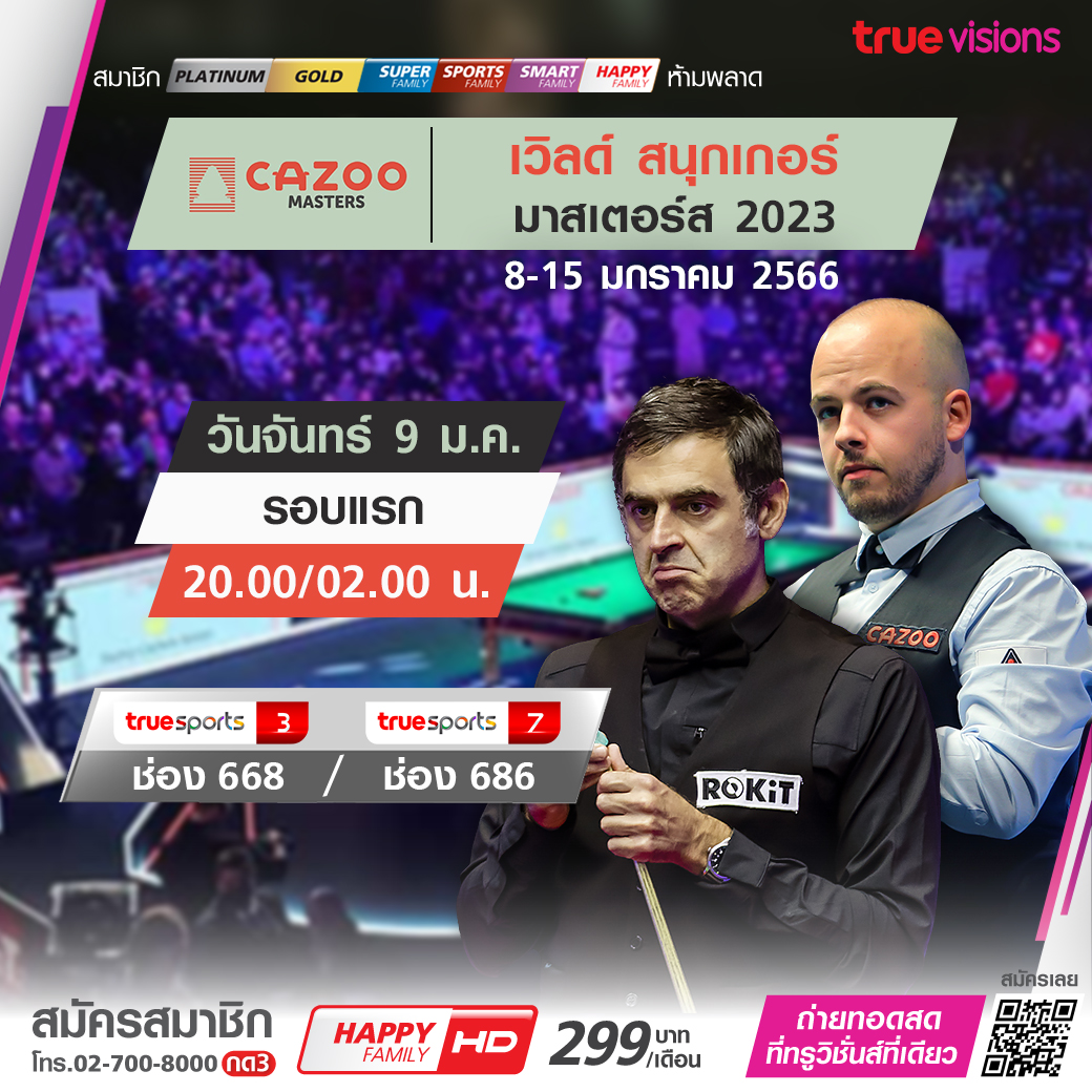 ศึกแห่งศักดิ์ศรีของวงการสนุกเกอร์ รายการ กาซู มาสเตอร์ส 2023 ยิ่งใหญ่ ระดับ 1 ใน 3 ของรายการระดับทริปเปิ้ล คราวน์ คัดมือเด็ด 16 อันดับแรกของโลกมาดวลกันเพื่อหาแชมป์เพียงหนึ่งเดียว ชมสด รอบแรกถึงรอบชิงชนะเลิศ ทางทรูวิชั่นส์ ที่เดียว