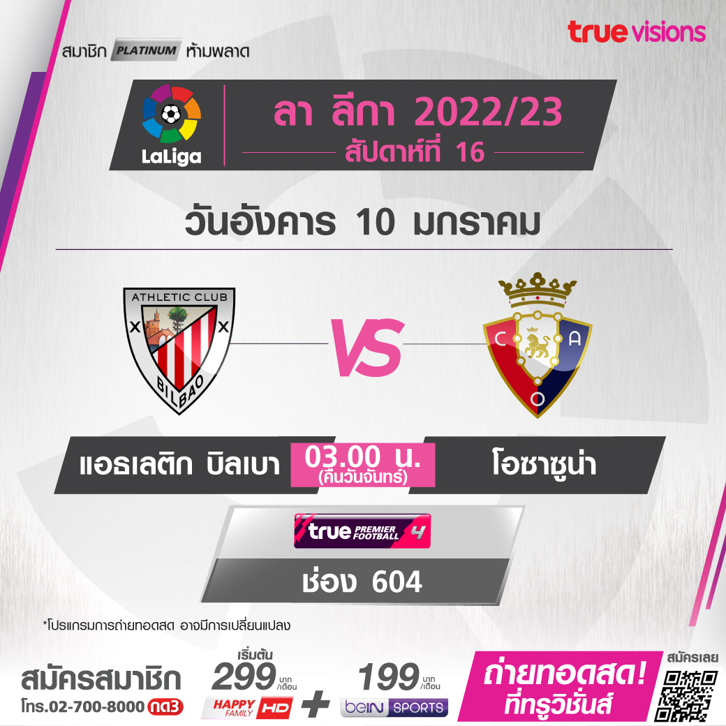 Athletic vs Osasuna เวลา 03.00-05.00 ทางช่อง TPF 4 (604)