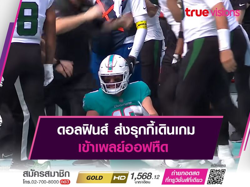 “ดอลฟินส์” หยุดความพ่ายแพ้ 5 เกมติดต่อกัน คว้าพื้นที่สุดท้ายเข้าเพลย์ออฟแบบหืดจับ เฉือนชนะ “เจ็ตส์” แบบไร้ทัชดาวน์ และต้องใช้ “ธอมป์สัน” ควอเตอร์แบ็ครุกกี้ลงสนาม