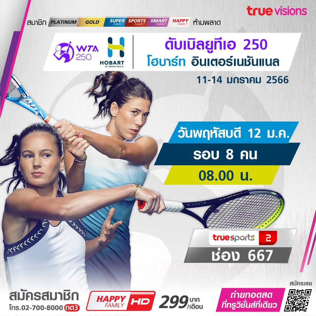 เทนนิสหญิง ดับเบิลยูทีเอทัวร์ ฤดูกาล 2023 โฮบาร์ท อินเตอร์เนชั่นแนล ที่เมืองโฮบาร์ท ประเทศออสเตรเลีย เข้าสู่รอบ 8 คนสุดท้าย ลุ้นไปด้วยกันว่านักเทนนิสคนไหนจะคว้าแชมป์ไปครอง ชมสด ทางทรูวิชั่นส์ ที่เดียว