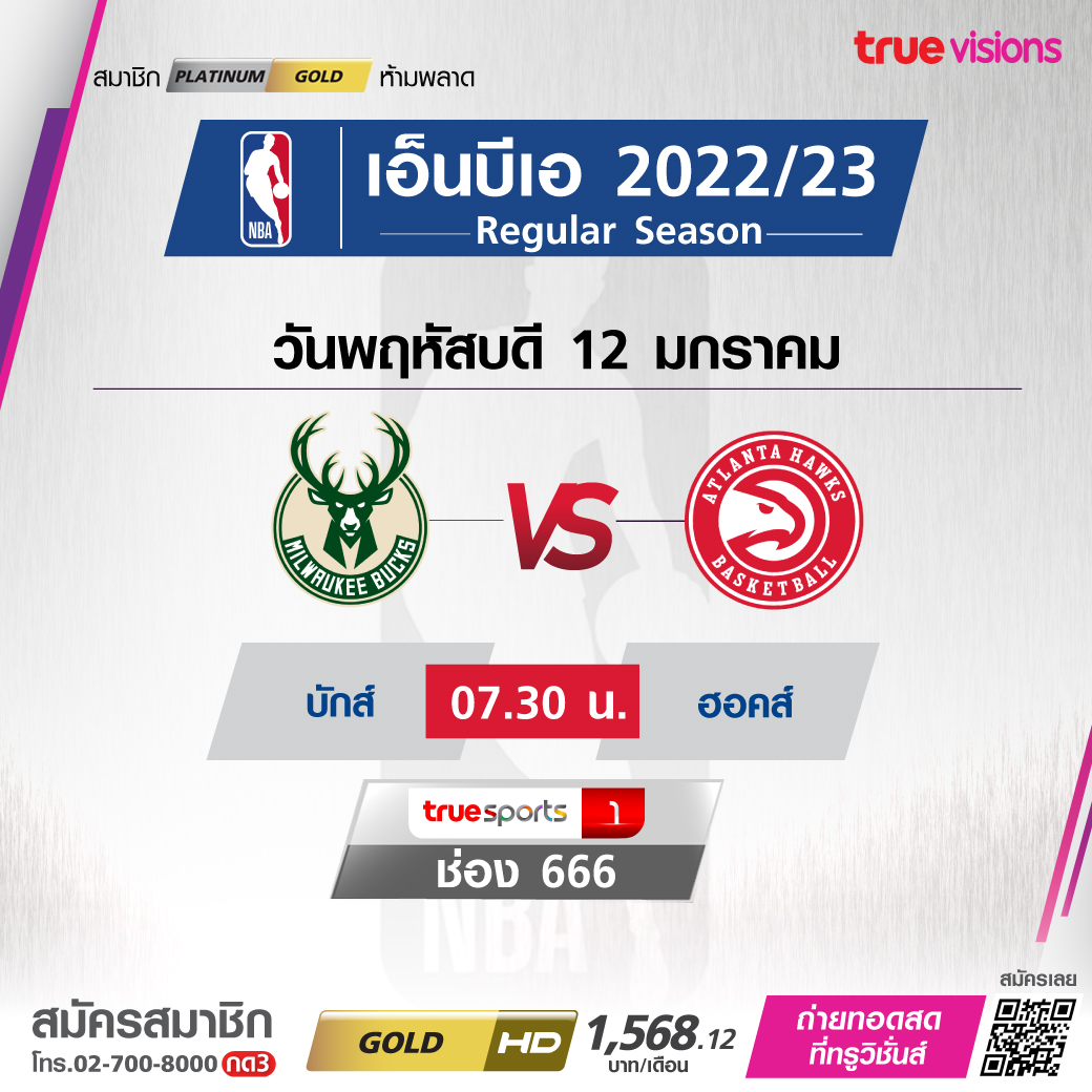 วันพฤหัสบดี 12 ม.ค. Bucks Vs Hawks เวลา 07.30 ทางช่อง TS 1 (666)