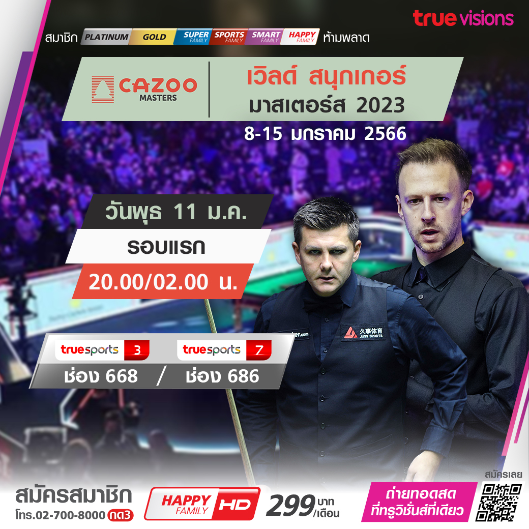 ศึกแห่งศักดิ์ศรีของวงการสนุกเกอร์ รายการ กาซู มาสเตอร์ส 2023 ยิ่งใหญ่ เข้าสู่วันที่สี่ในรอบแรก ร่วมเชียร์นักสนุกเกอร์ระดัลโลกร่วมชิงชัยในรายการนี้ ชมสด รอบแรกถึงรอบชิงชนะเลิศ ทางทรูวิชั่นส์ ที่เดียว