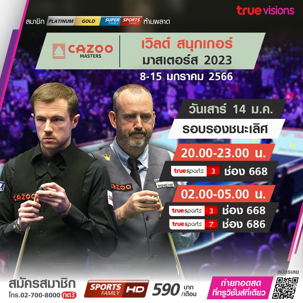 ศึกแห่งศักดิ์ศรีของวงการสนุกเกอร์ รายการ กาซู มาสเตอร์ส 2023 เดินทางมาถึงรอบรองชนะเลิศแล้ว ใครจะคว้าแชมป์ไปครอง ชมสด ทางทรูวิชั่นส์ ที่เดียว