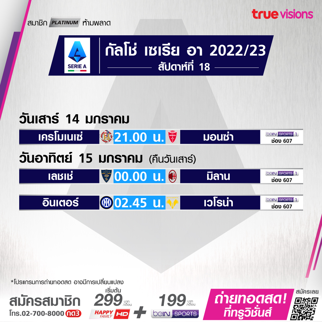 Inter vs Verona เวลา 02.45-04.45 ทางช่อง beIN 1 (607)