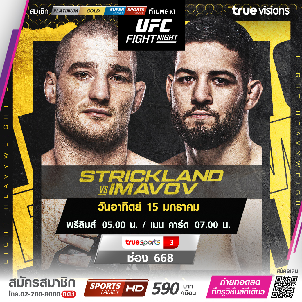 ศึกกรงเหล็ก ยูเอฟซี ไฟต์ไนท์ ประเดิมไฟต์แรกของปี 2023 กับความมันจาก ยูเอฟซี เอเพ็กซ์ ลาสเวกัส คู่เอกรุ่นมิดเดิ้ลเวต ทาร์ซาน ฌอน สตริคแลนด์ วัดความหนักกับ นัสซอร์ดิน อิวามอฟ ร่วมด้วย แดน อิเก้ พบ เดม่อน แจ็คสัน ชมสด จุใจ ทั้งช่วงพรีลิมส์ และ เมน คาร์ด ชมสด ทาง ทรูวิชั่นส์ ที่เดียว