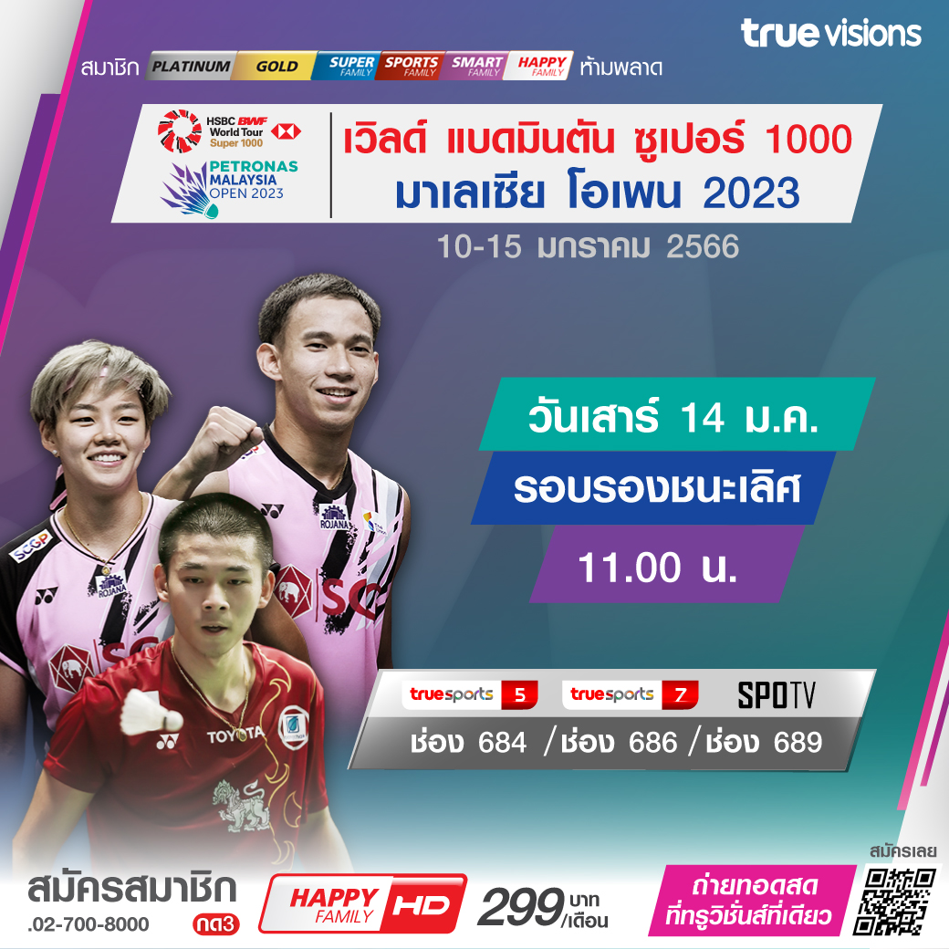 แบดมินตัน มาเลเซีย โอเพ่น รายการใหญ่ระดับเวิลด์ ทัวร์ ซูเปอร์ 1000 ในรอบรองชนะเลิศ ร่วมเชียร์ “วิว” กุลวุฒิ วิทิตศานต์ และ "บาส" เดชาพล พัววรานุเคราะห์ กับ "ปอป้อ" ทรัพย์สิรี แต้รัตนชัย คว้าแชมป์ในรายการนี้ให้ได้ ชมสด ทางทรูวิชั่นส์ ที่เดียว