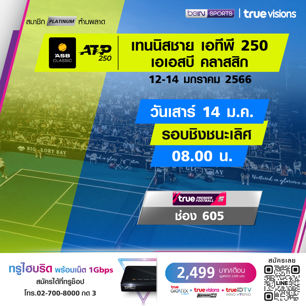 เทนนิสชาย เอทีพี เอเอสบี คลาสสิก จากอ็อคแลนด์ นิวซีแลนด์ มาถึงในรอบชิงชนะเลิศ ร่วมลุ้นและเชียร์กันว่าแชมป์รายการนี้จะเป็นของใคร ชมสด ทาง ทรูวิชั่นส์